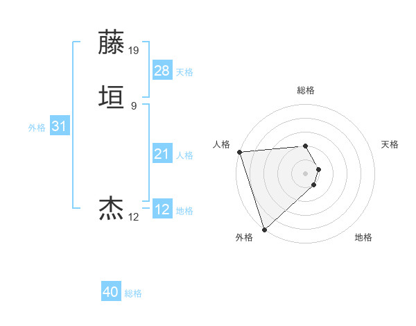藤垣 杰さんを姓名の画数から五運を鑑定