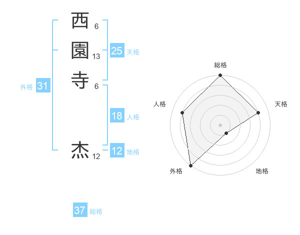 西園寺 杰さんの天格は25画の4点!