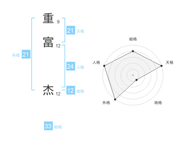 重富 杰さんの天格は21画の5点!
