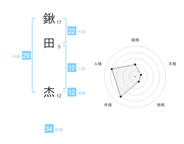 鍬田 杰さんの総格は34画の2点!