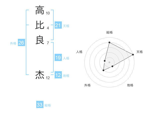 高比良 杰さんの天格は21画の5点!