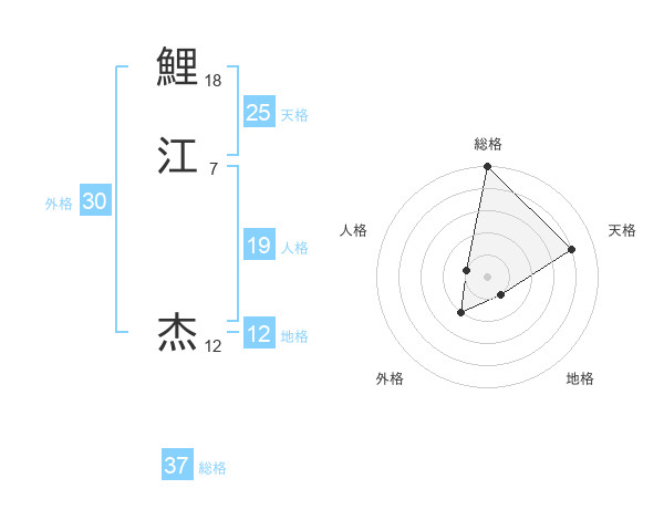 鯉江 杰さんの総格は37画の5点!