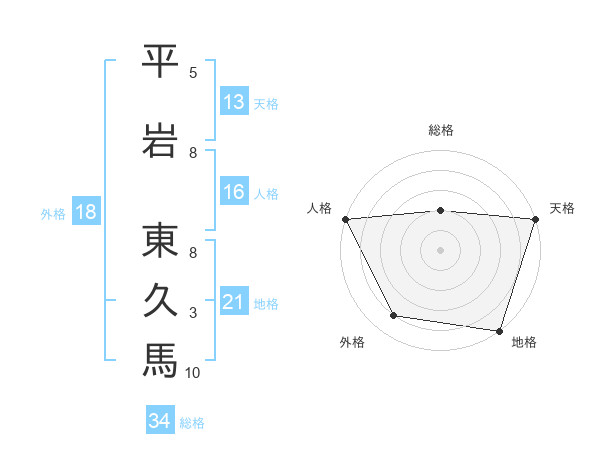 平岩 東久馬さんの天格は13画の5点!