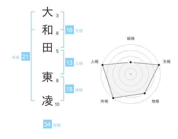 大和田 東凌さんを姓名の画数から五運を鑑定