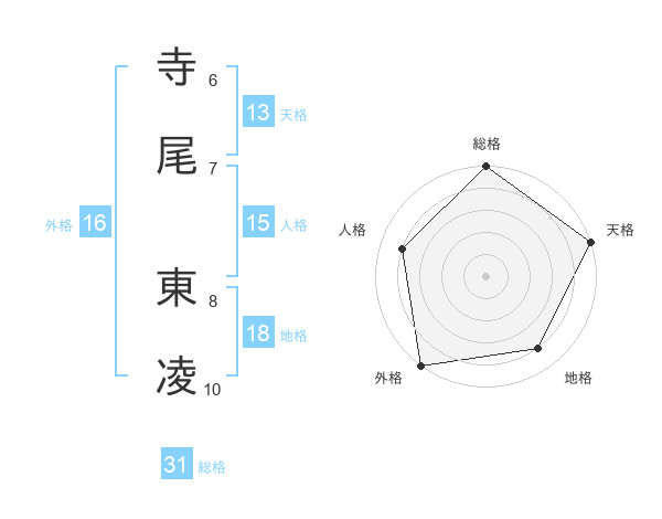 寺尾 東凌さんを姓名の画数から五運を鑑定