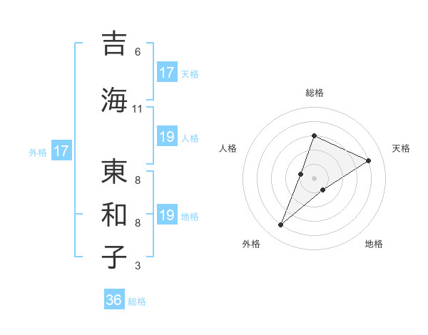 吉海 東和子さんを姓名の画数から五運を鑑定