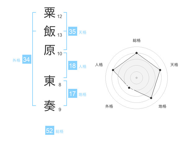 粟飯原 東奏さんの総格は52画の4点!
