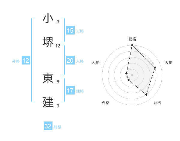 小堺 東建さんの総格は32画の5点!