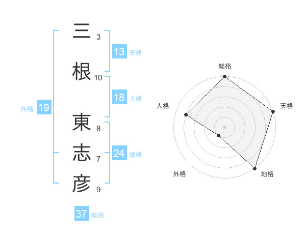 三根 東志彦さんを姓名の画数から五運を鑑定