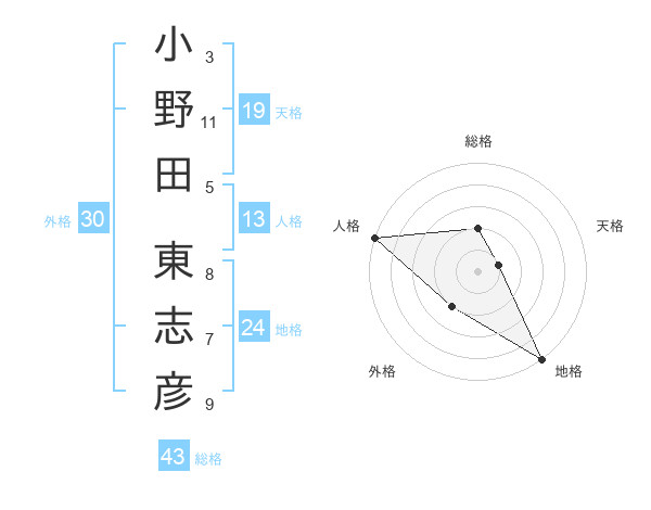 小野田 東志彦さんを姓名の画数から五運を鑑定