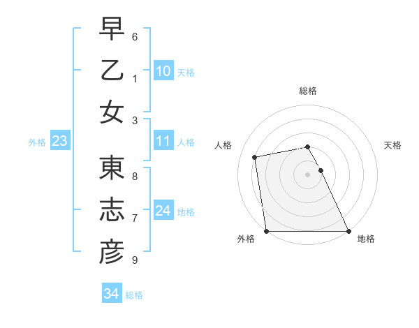 早乙女 東志彦さんの総格は34画の2点!