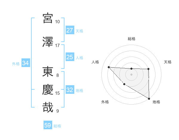 宮澤 東慶哉さんの総格は59画の1点!