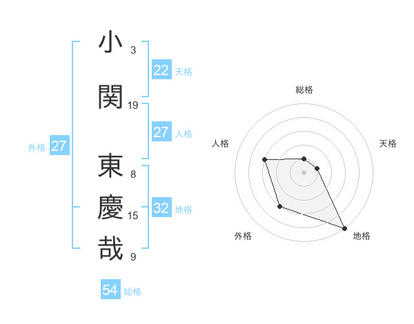 小関 東慶哉さんを姓名の画数から五運を鑑定