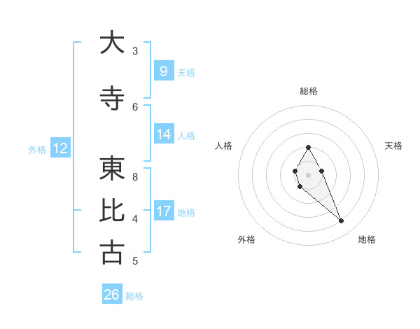 大寺 東比古さんを姓名の画数から五運を鑑定