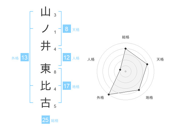 山ノ井 東比古さんの外格は13画の5点!