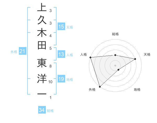 上久木田 東洋一さんの外格は21画の5点!