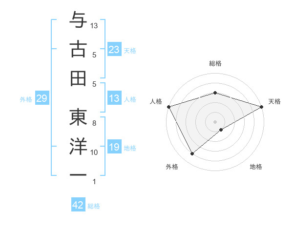 与古田 東洋一さんを姓名の画数から五運を鑑定