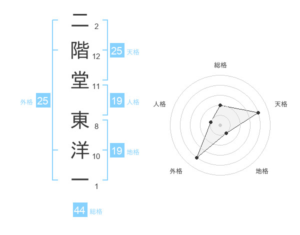 二階堂 東洋一さんを姓名の画数から五運を鑑定