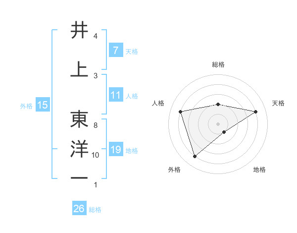 井上 東洋一さんを姓名の画数から五運を鑑定
