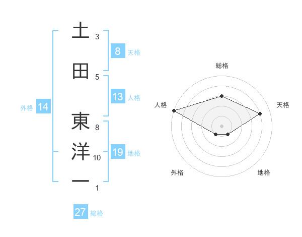 土田 東洋一さんを姓名の画数から五運を鑑定