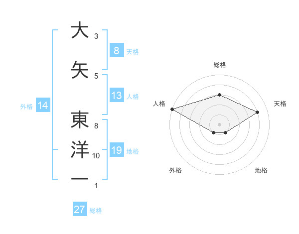 大矢 東洋一さんを姓名の画数から五運を鑑定