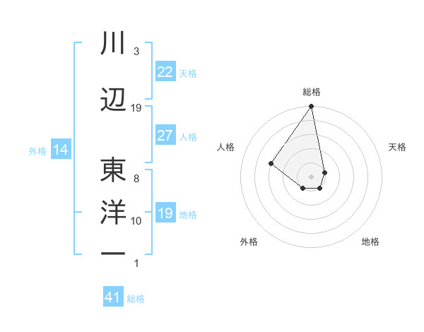 川辺 東洋一さんの総格は41画の5点!