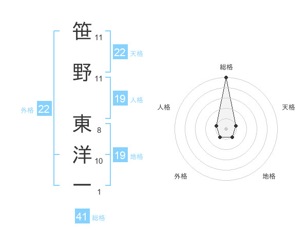 笹野 東洋一さんを姓名の画数から五運を鑑定