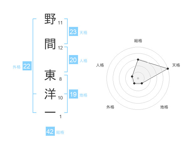 野間 東洋一さんを姓名の画数から五運を鑑定