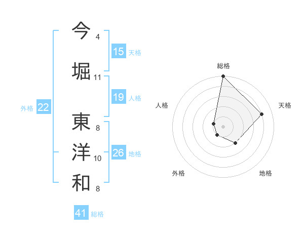 今堀 東洋和さんを姓名の画数から五運を鑑定
