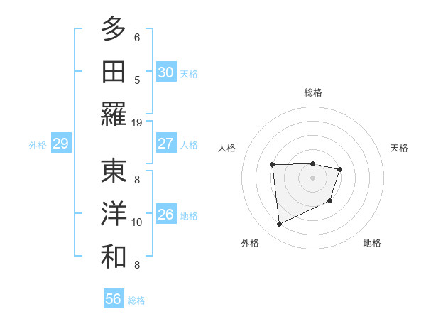 多田羅 東洋和さんを姓名の画数から五運を鑑定