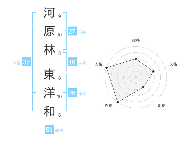 河原林 東洋和さんの外格は37画の5点!
