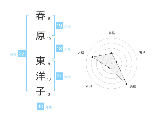 春原 東洋子さんの総格は40画の2点!