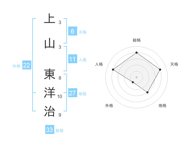 上山 東洋治さんの総格は33画の4点!