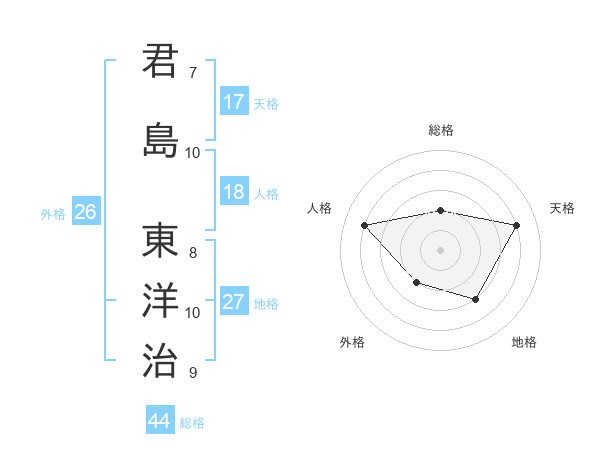 君島 東洋治さんを姓名の画数から五運を鑑定