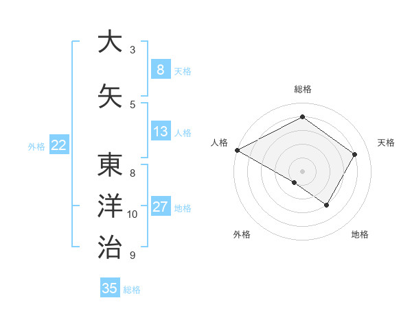 大矢 東洋治さんを姓名の画数から五運を鑑定