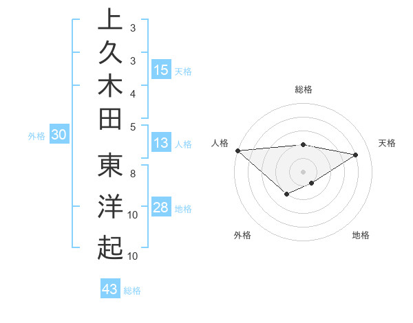 上久木田 東洋起さんを姓名の画数から五運を鑑定