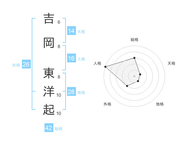 吉岡 東洋起さんの総格は42画の3点!