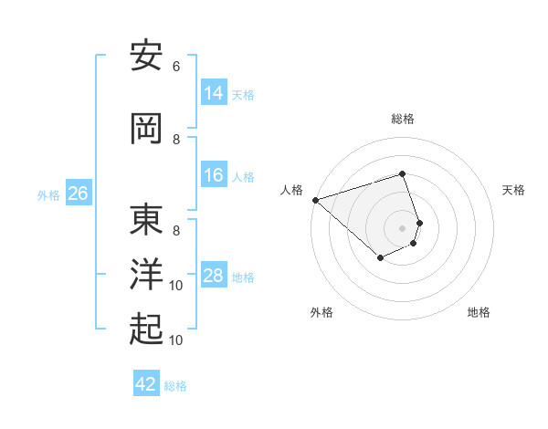 安岡 東洋起さんを姓名の画数から五運を鑑定