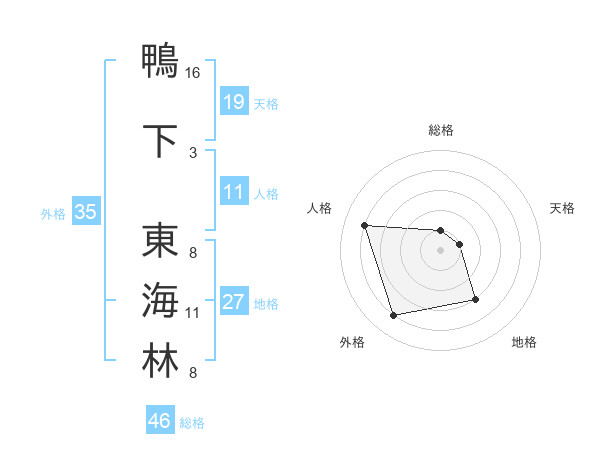 鴨下 東海林さんを姓名の画数から五運を鑑定