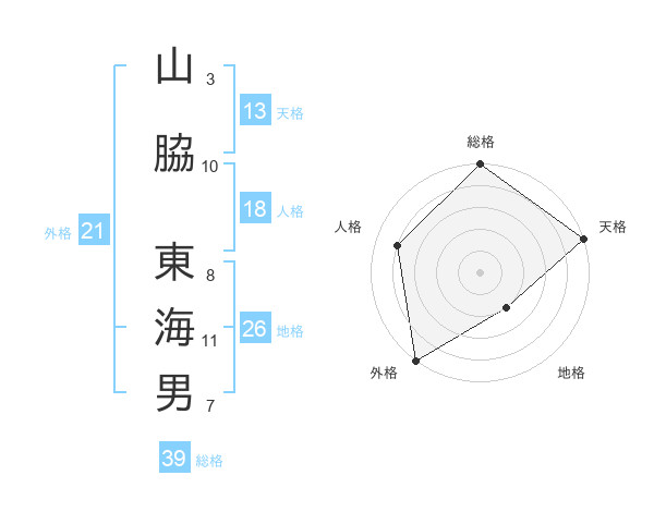 山脇 東海男さんを姓名の画数から五運を鑑定