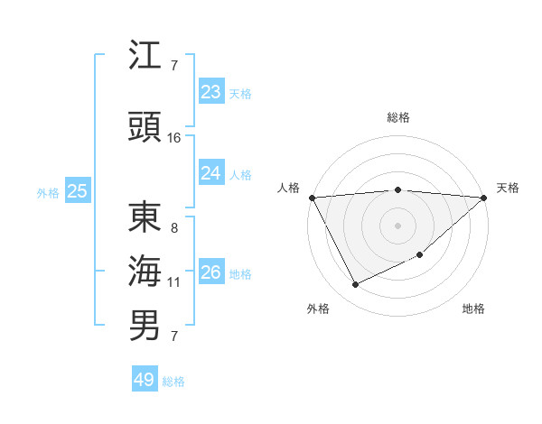 江頭 東海男さんの天格は23画の5点!