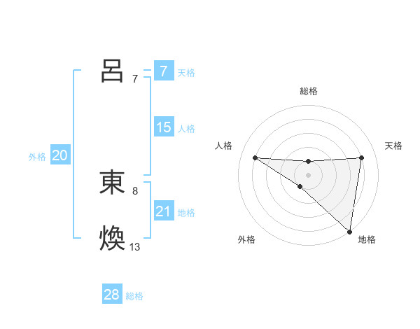 呂 東煥さんを姓名の画数から五運を鑑定