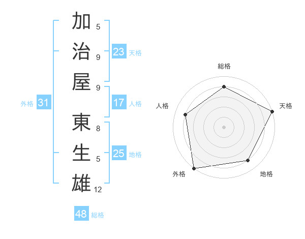 加治屋 東生雄さんを姓名の画数から五運を鑑定