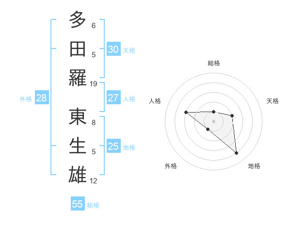 多田羅 東生雄さんを姓名の画数から五運を鑑定