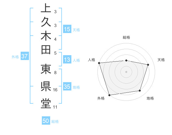 上久木田 東県堂さんを姓名の画数から五運を鑑定