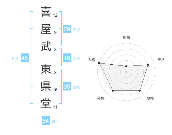 喜屋武 東県堂さんを姓名の画数から五運を鑑定