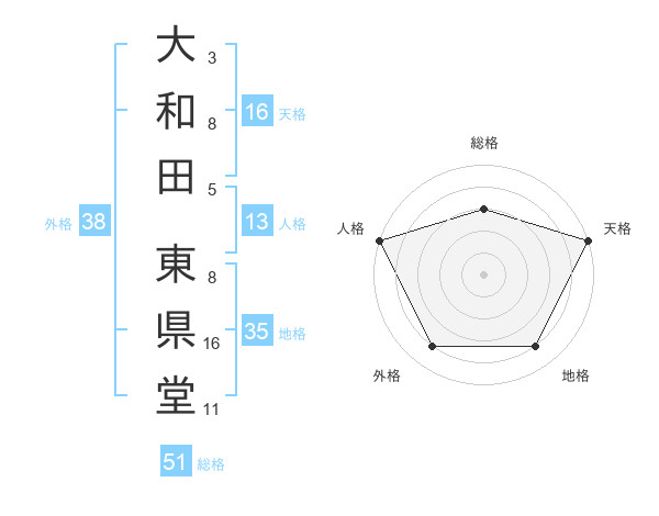 大和田 東県堂さんを姓名の画数から五運を鑑定