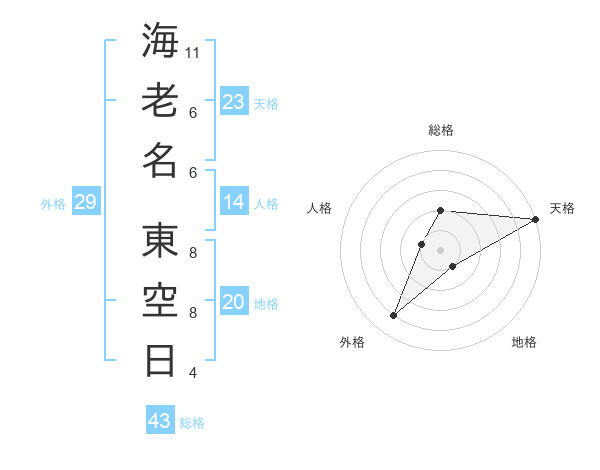 海老名 東空日さんを姓名の画数から五運を鑑定