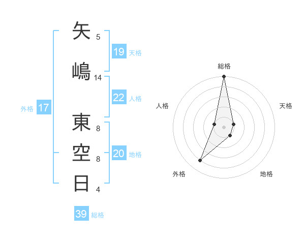矢嶋 東空日さんの総格は39画の5点!