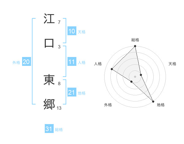 江口 東郷さんの総格は31画の5点!